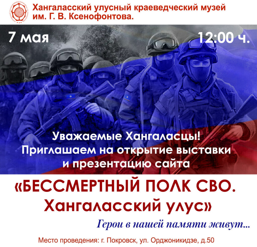 Приглашаем на открытие выставки и презентацию сайта «Бессмертный полк СВО. Хангаласский улус» 7 мая в 12:00 ч.