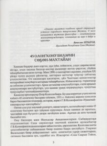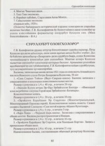 Публикуем отрывки из книги, в которую вошли отрывки из олоҥхо Петра Колесова, жителя Атамайского наслега, знавшего 45 олоҥхо, которые записал и перевел на русский язык известный этнограф, историк Г. В. Ксенофонтов.
