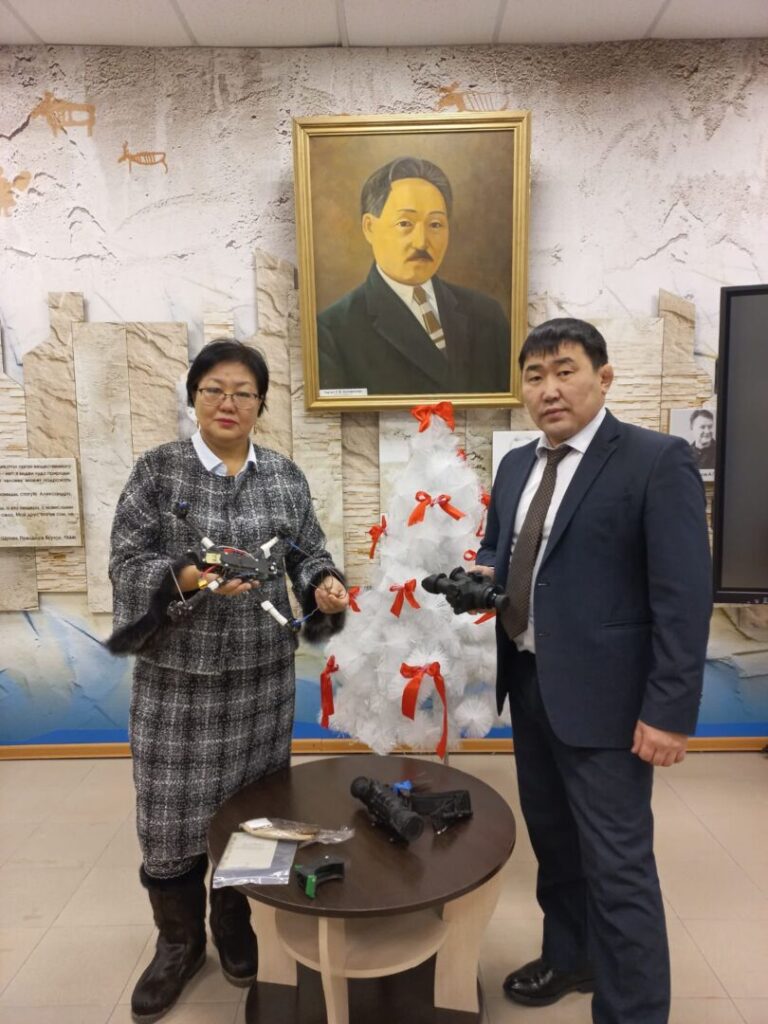 28 декабря с зоны специальной военной операции заместитель главы по социальным вопросам Хангаласского улуса Никифоров Юрий Юрьевич привез экспонаты для экспозиции СВО.