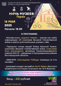 Сегодня в музее состоялось торжественное награждение участников улусной заочной научно-исследовательской конференции «ВОЙНА. ПОБЕДА. ПАМЯТЬ 1941-1945 гг.», посвященной 80-летию Победы в Великой Отечественной войне 1941-1945 гг.
